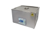 通過換能器,將功率超聲頻源的聲能轉(zhuǎn)換成機(jī)械振動,通過清洗槽壁將超聲波輻射到槽子中的清洗液。由于受到超聲波的輻射,槽內(nèi)液體中的微氣泡能夠在聲波的作用下快速變大破裂,破裂時產(chǎn)生的高強(qiáng)度剪切力作用于各類樣品上,從而達(dá)到清洗、提取、乳化、加速溶解、粉碎、分散等作用。